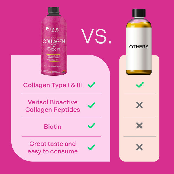 Zena™ Liquid Collagen + Biotin contains collagen types I and III.