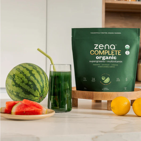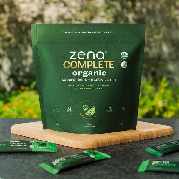 Zena Organic Supergreens is USDA organic certified and offers a unique blend of fruits, vegetables, superfoods, digestive enzymes, and probiotics.